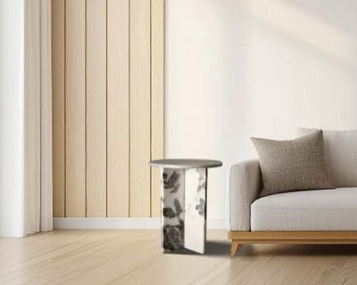 Each Sibi Accent Side Table is expertly crafted from high-quality white marble, showcasing a beautiful interplay of light and dark tones. The dramatic dark grey veins create a stunning contrast against the crisp white background, adding depth and character to the table’s surface. The smooth home decor, polished finish enhances the natural beauty of the marble, ensuring a refined look to home decor that transform your space.